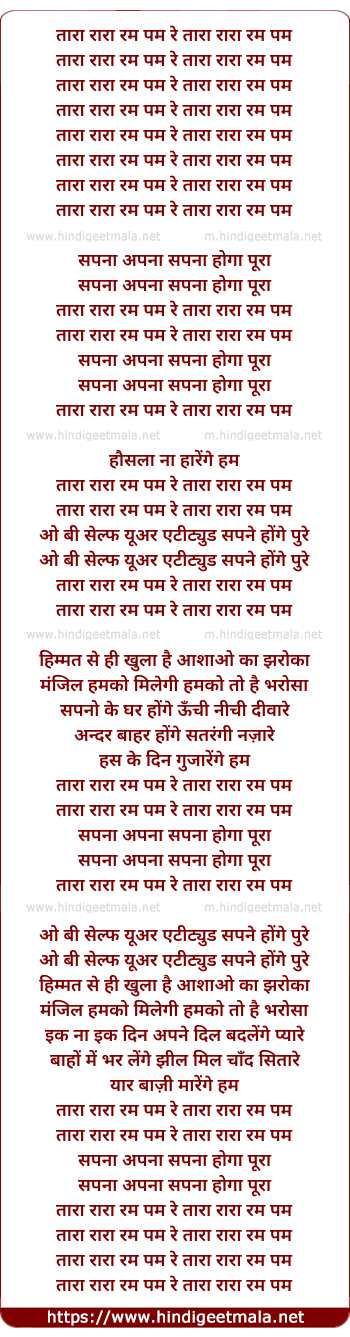 Poetic Translation - Lyrics of Tara Ram Pam - तारा रम पम