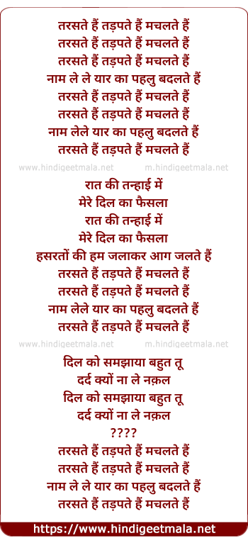 Lyrics of Taraste Hai Tadpate Hai - तरसते हैं तड़पते हैं मचलते हैं