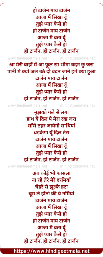 Lyrics of Tarzan My Tarzan Aaja Mai Sekha Tujhe Pyar Kaise Ho - हो टार्जन माय टार्जन आजा मैं सिखा दूँ