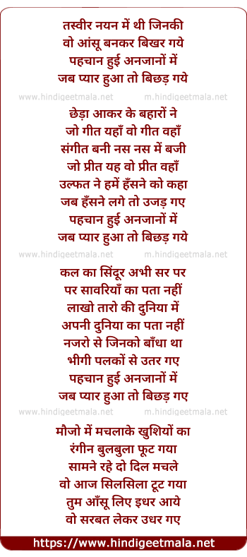 Lyrics of Tasveer Nayan Me Thi Jinki - तस्वीर नयन में थी जिनकी
