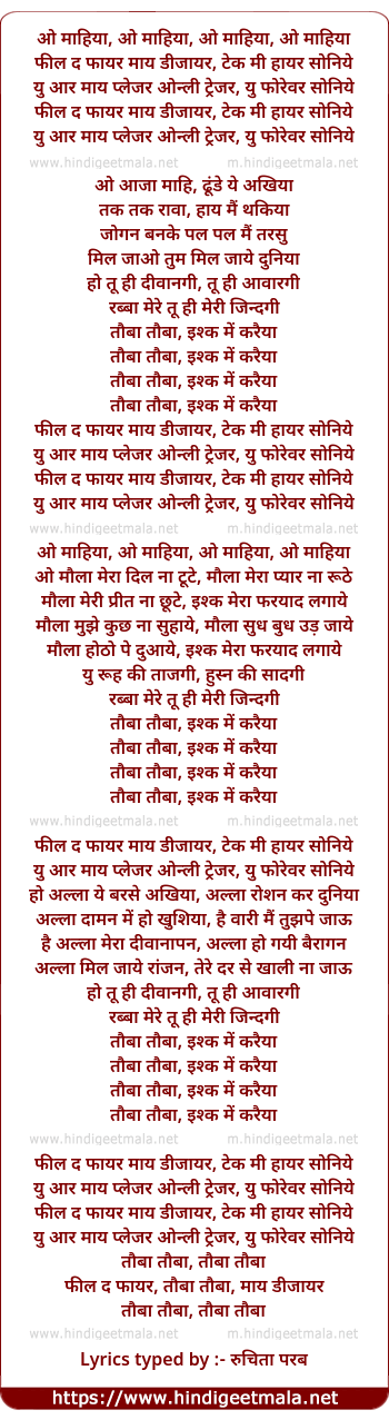 Lyrics of Tauba Tauba Ishq Main Kariya - तौबा तौबा इश्क मैं करैया