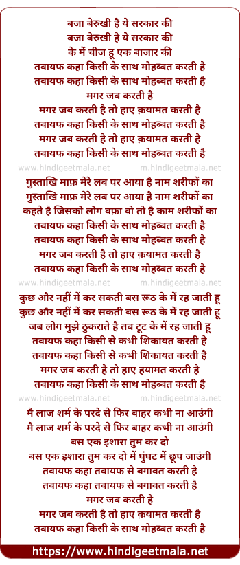 Lyrics of Tawaif Kahan Kisi Se Mohabbat Karti Hai - तवायफ कहा किसी के साथ मोहब्बत करती है