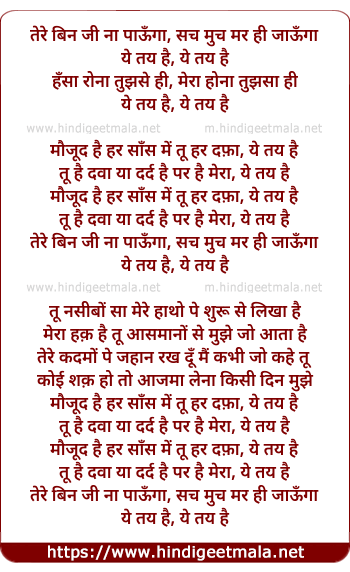 Poetic Translation - Lyrics of Ye Tay Hai - ये तय है