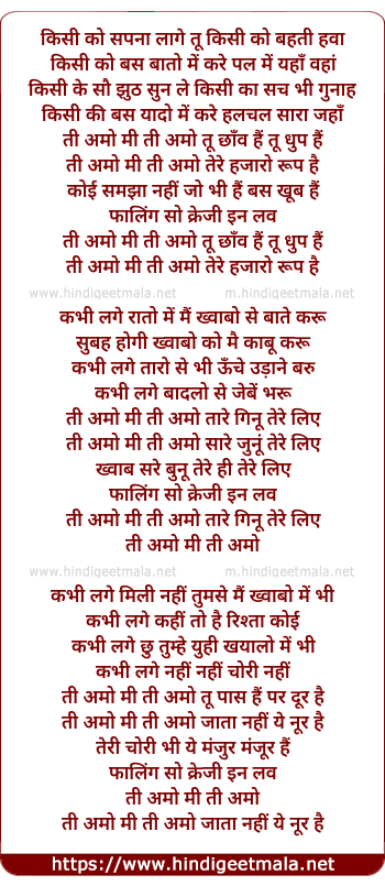 Lyrics of Te Amo Me Te Amo (Female) - ती अमो मी ती अमो