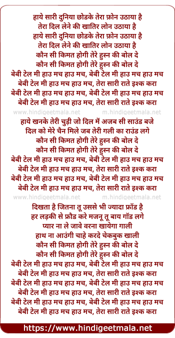 baby tell me how much how much, tera saari raate ishk kara