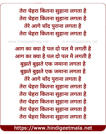 Lyrics of Tera Chera Kitna Suhana Lagta Hai - तेरा चेहरा कितना सुहाना लगता है