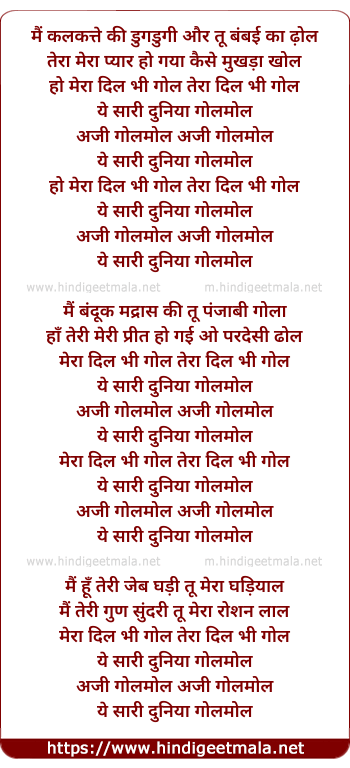 Lyrics of Tera Dil Bhi Gol Duniya Gol Mol - तेरा दिल भी गोल दुनिया गोल मोल