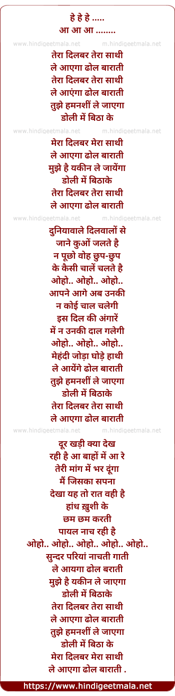 Lyrics of Tera Dilbar Tera Sathi (Sad)