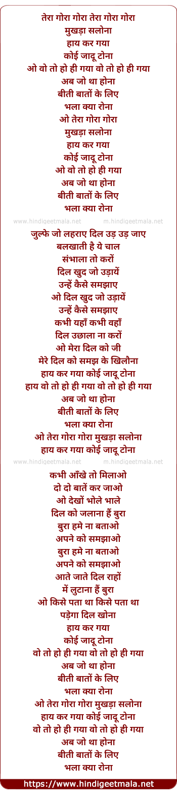 TERA GORA GORA MUKDA SALONA--HEY KAR GAYA KOI JAADU TONA--- WOH TO HO HI