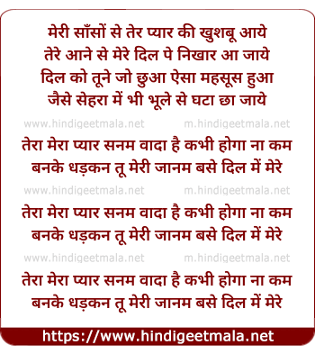 Lyrics of Tera Mera Pyaar Sanam - मेरी साँसों से तेर प्यार की खुशबू आये