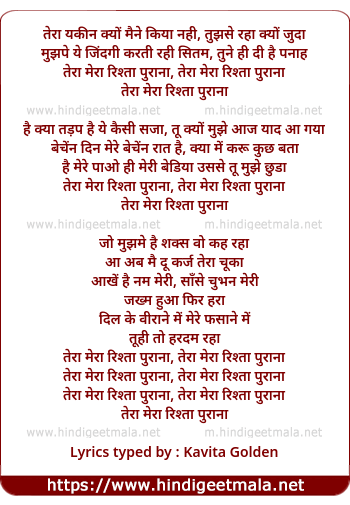tera mera rishta purana, tera mera rishta purana
