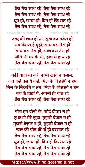 Lyrics of Tera Mera Saath Rahe - तेरा मेरा साथ रहे
