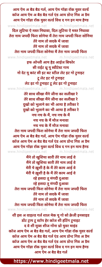 Lyrics of Tera Naam Japdi Phira - तेरा नाम जपदी फिरा