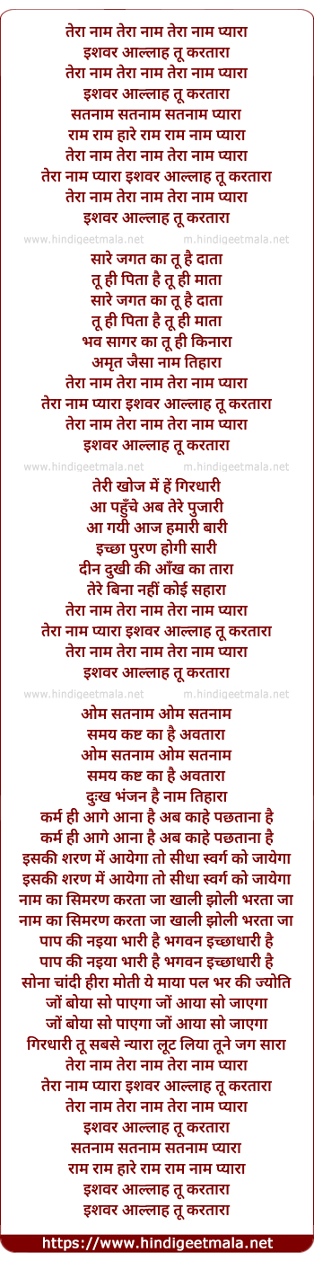 tera naam pyara ishwar allah tu kartara