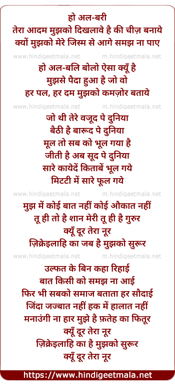 kyu dur tera noor zikreilaahi ka hai mujhko surur