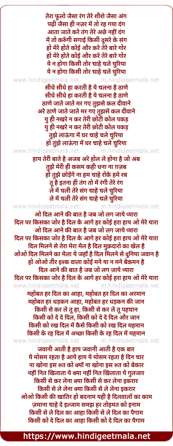 Lyrics of Tera Phoolon Jaisa Rang Tere Shishe Jaisa Ang - तेरा फूलो जैसा रंग तेरे शीशे जैसा अंग