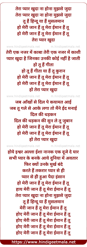 Lyrics of Tera Pyaar Khuda Na Hona Mujhse Juda - तेरा प्यार खुदा ना होना मुझसे जुदा