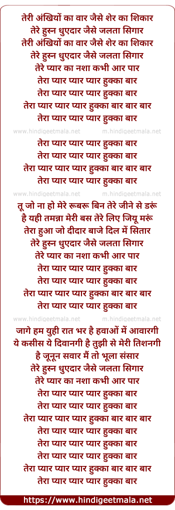 Lyrics of Tera Pyar Pyar Pyar Huka Bar (Remix) - तेरा प्यार प्यार प्यार हुक्का बार