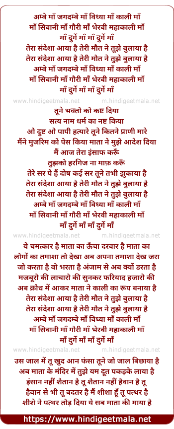 tera sandesha aaya hai teri maut ne tujhe bulaya hai