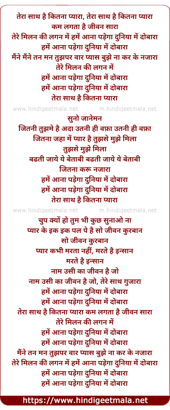 tere milan ki lagan me hame ana padega dunia me dobara