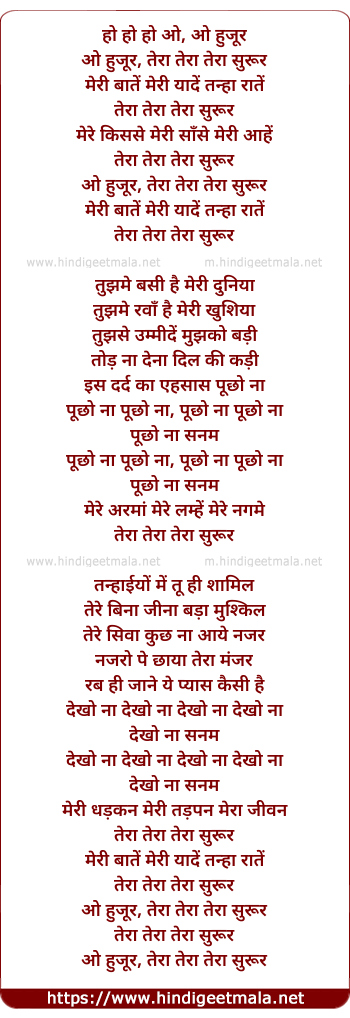 Lyrics of Tera Tera Tera Suroor - तेरा तेरा तेरा सुरूर