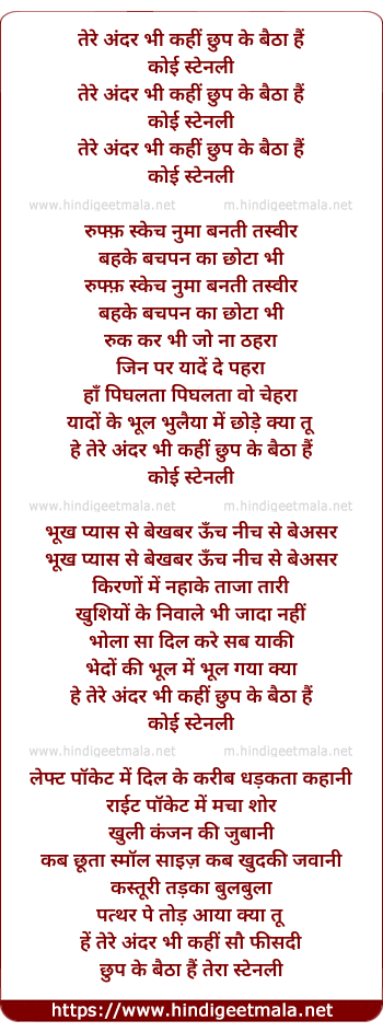 Lyrics of Tere Andar Bhi Kahin Chup Ke Baitha Hai - तेरे अंदर भी कहीं छुप के बैठा हैं