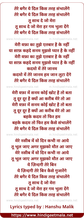 Lyrics of Tere Bagair Yeh Dil Kis Tarah Sambhaalenge - तेरे बगैर ये दिल किस तरह संभालेंगे