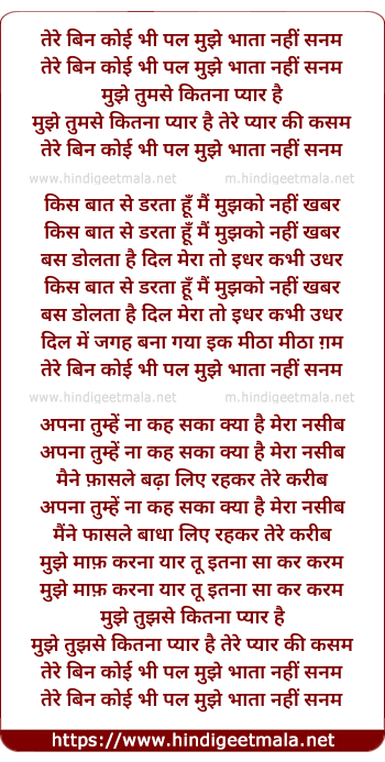 tere bin koi bhi pal mujhe bhata nahi sanam