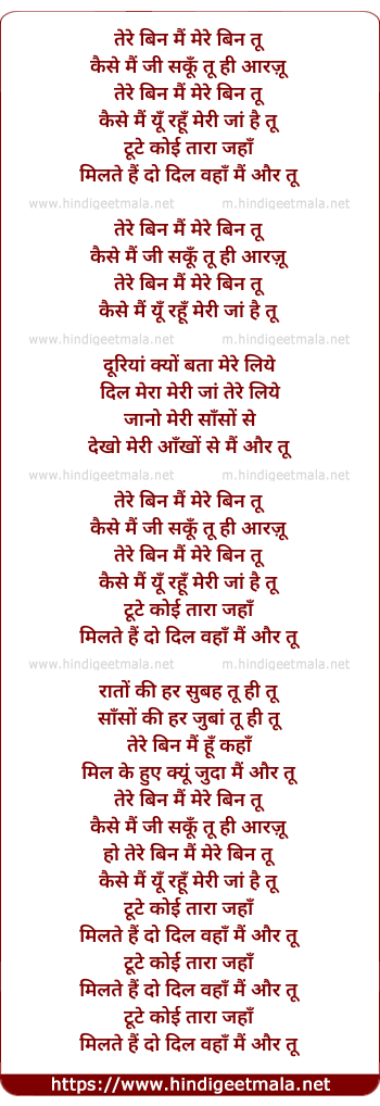 Lyrics of Tere Bin Mai - तेरे बिन मैं मेरे बिन तू