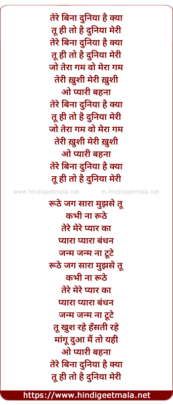 Lyrics of Tere Bina Duniya Hai Kya - तेरे बिना दुनिया है क्या