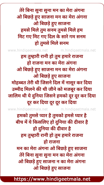 Lyrics of Tere Bina Soona Soona Man Ka Mera Angna - तेरे बिना सुना सुना मन का मेरा अंगना