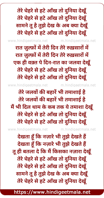 Lyrics of Tere Chehare Se Hate Aankh Toh - तेरे चेहरे से हटे आँख तो