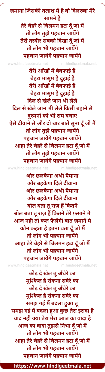 Lyrics of Tere Chehre Se Chilman Hata Dun - तेरे चेहरे से चिलमन हटा दूँ