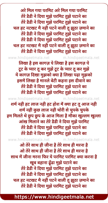 Lyrics of Tere Daddy Ne Diya Mujhe Permit - तेरे डैडी ने दिया मुझे परमिट