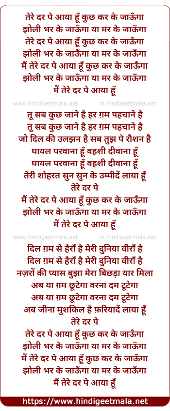 Lyrics of Tere Dar Pe Aaya Hoon - तेरे दर पे आया हूँ
