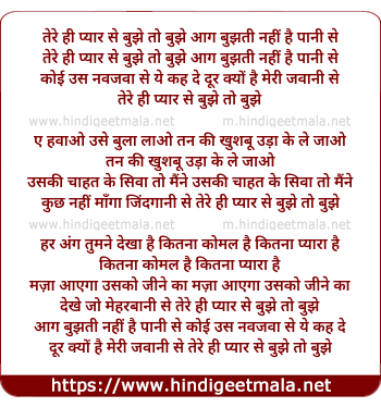 Lyrics of Tere Hi Pyar Se Bujhe To Bujhe - तेरे ही प्यार से बुझे तो बुझे