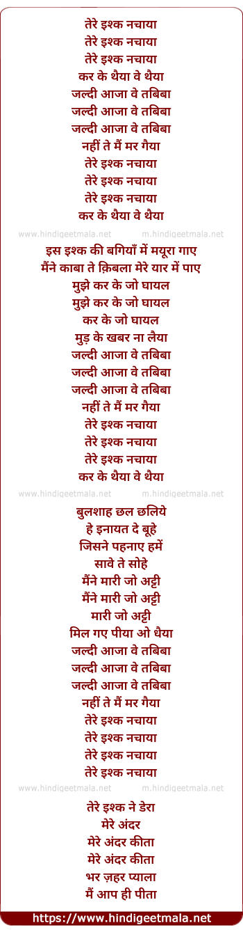 Lyrics of Tere Ishq Nachaaya - तेरे इश्क नचाया