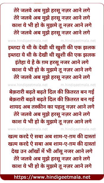 Lyrics of Tere Jalave Ab Mujhe Harasu Nazar Aane Lage - तेरे जलवे अब मुझे हरसू नज़र आने लगे