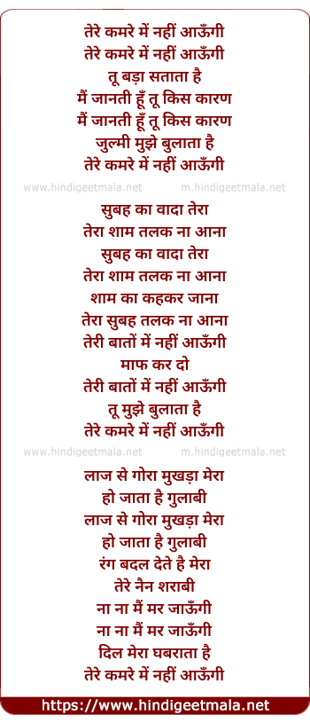 Lyrics of Tere Kamre Mein Nahin Aaungi - तेरे कमरे में नहीं आऊँगी