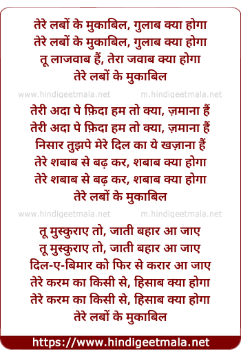 Lyrics of Tere Labon Ke Muqabil, Gulab Kya Hoga - तेरे लबों के मुकाबिल, गुलाब क्या होगा