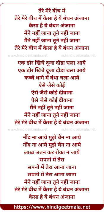 Lyrics of Tere Mere Beech Mein (Male) - तेरे मेरे बीच में