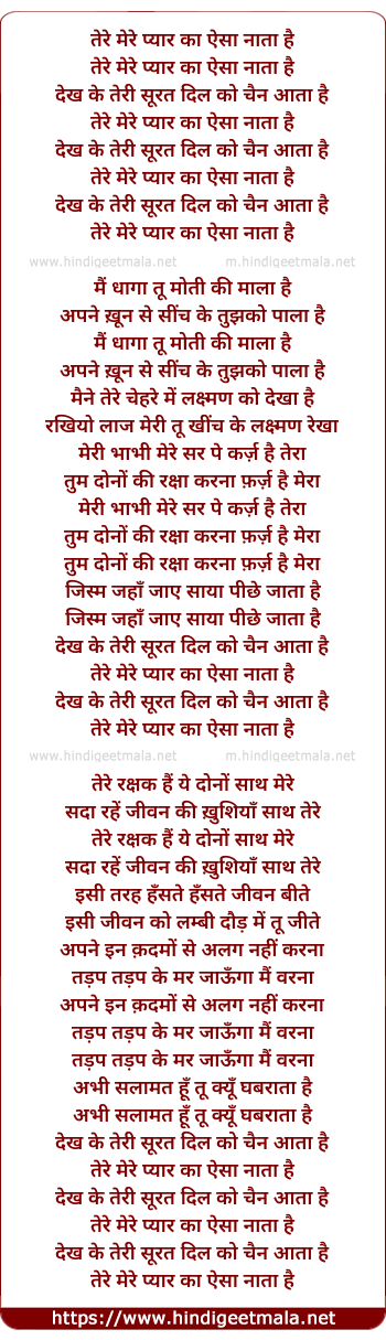 Lyrics of Tere Mere Pyar Ka Aisa Naata Hai - तेरे मेरे प्यार का ऐसा नाता है