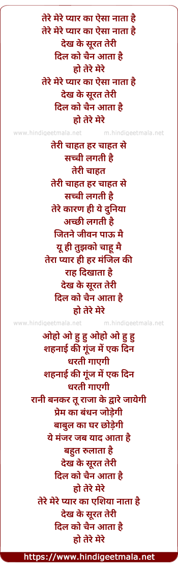 Lyrics of Tere Mere Pyar Ka Aisa Nata Hai - तेरे मेरे प्यार का ऐसा नाता है