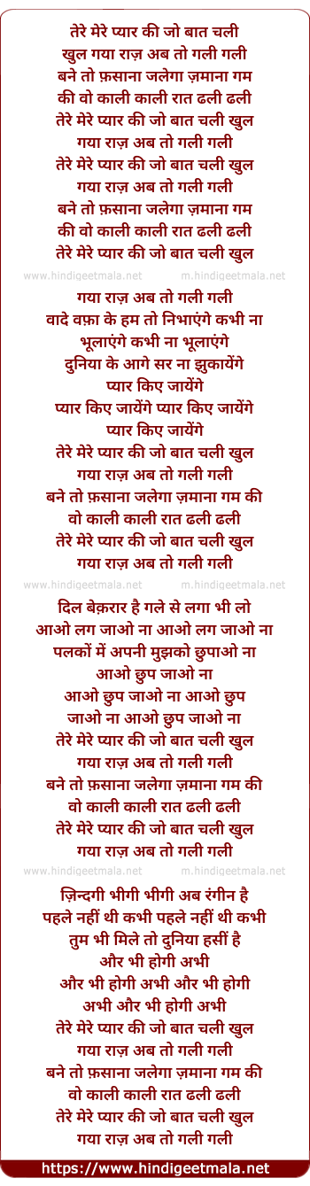 Lyrics of Tere Mere Pyar Ki Jo Baat Chali Khul Aaya Raaz Ab To Gali Gali - तेरे मेरे प्यार की जो बात चली खुल गया राज़ अब तो गली गली