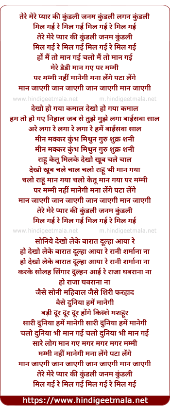 Lyrics of Tere Mere Pyar Ki Kundli - तेरे मेरे प्यार की कुंडली