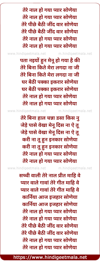 Lyrics of Tere Naal - तेरे नाल हो गया प्यार सोणेया