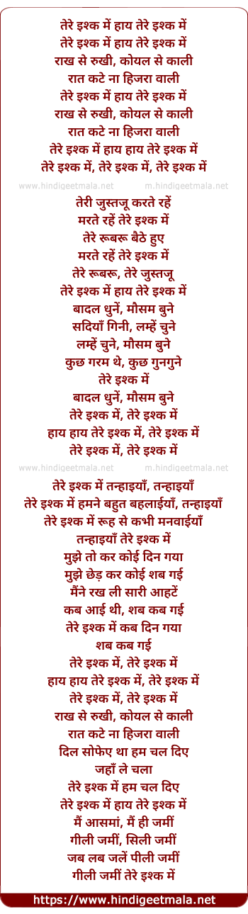 Lyrics of Tere Naina Mai - तेरे इश्क में हाय तेरे इश्क में