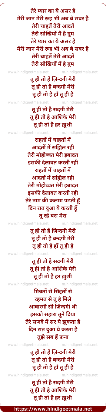 Lyrics of Tere Pyar Ka - तेरे प्यार का
