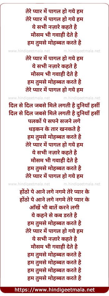 Lyrics of Tere Pyar Me Paagal - तेरे प्यार में पागल