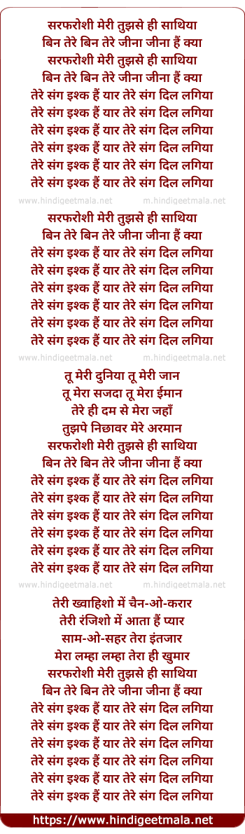 Lyrics of Tere Sang Ishq Hai, Tere Sang Dil Lagya - तेरे संग इश्क हैं, तेरे संग दिल लगिया
